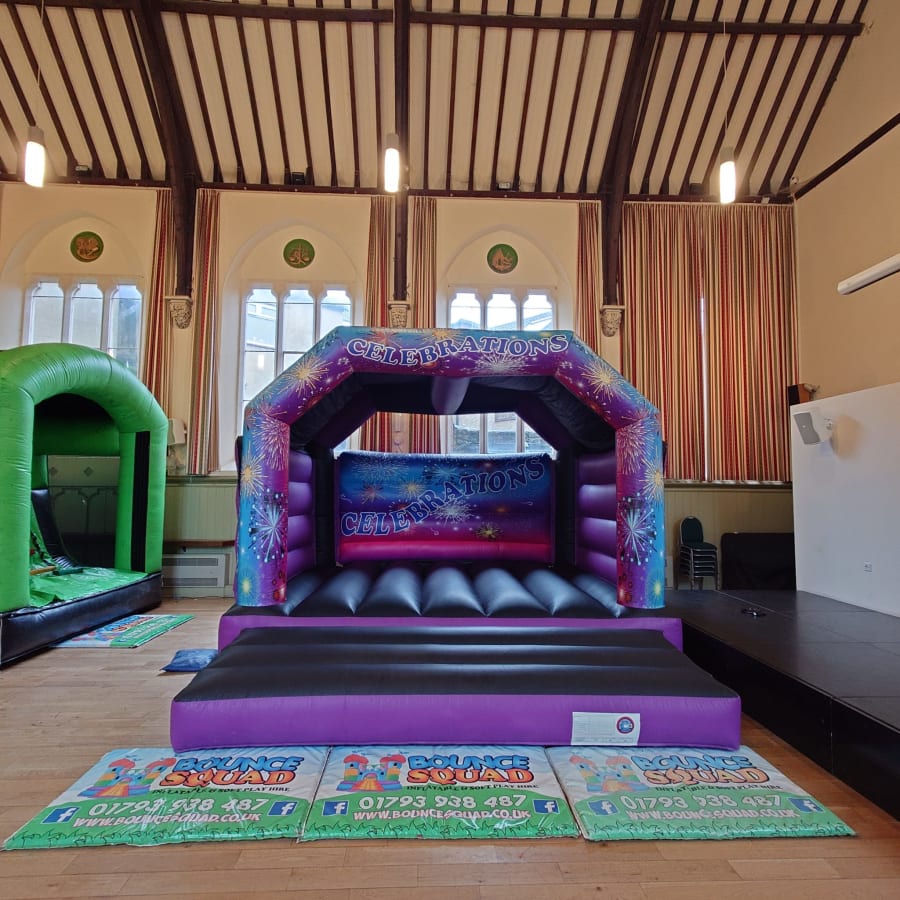 our largest 16x18ft adults/ kids castle. purple and black party themed castle ideal for teenagers use or adults or plenty of kids.We will deliver to Swindon and surrounding areas. please use our postcode finder to calculate you delivery and collection fee if any.